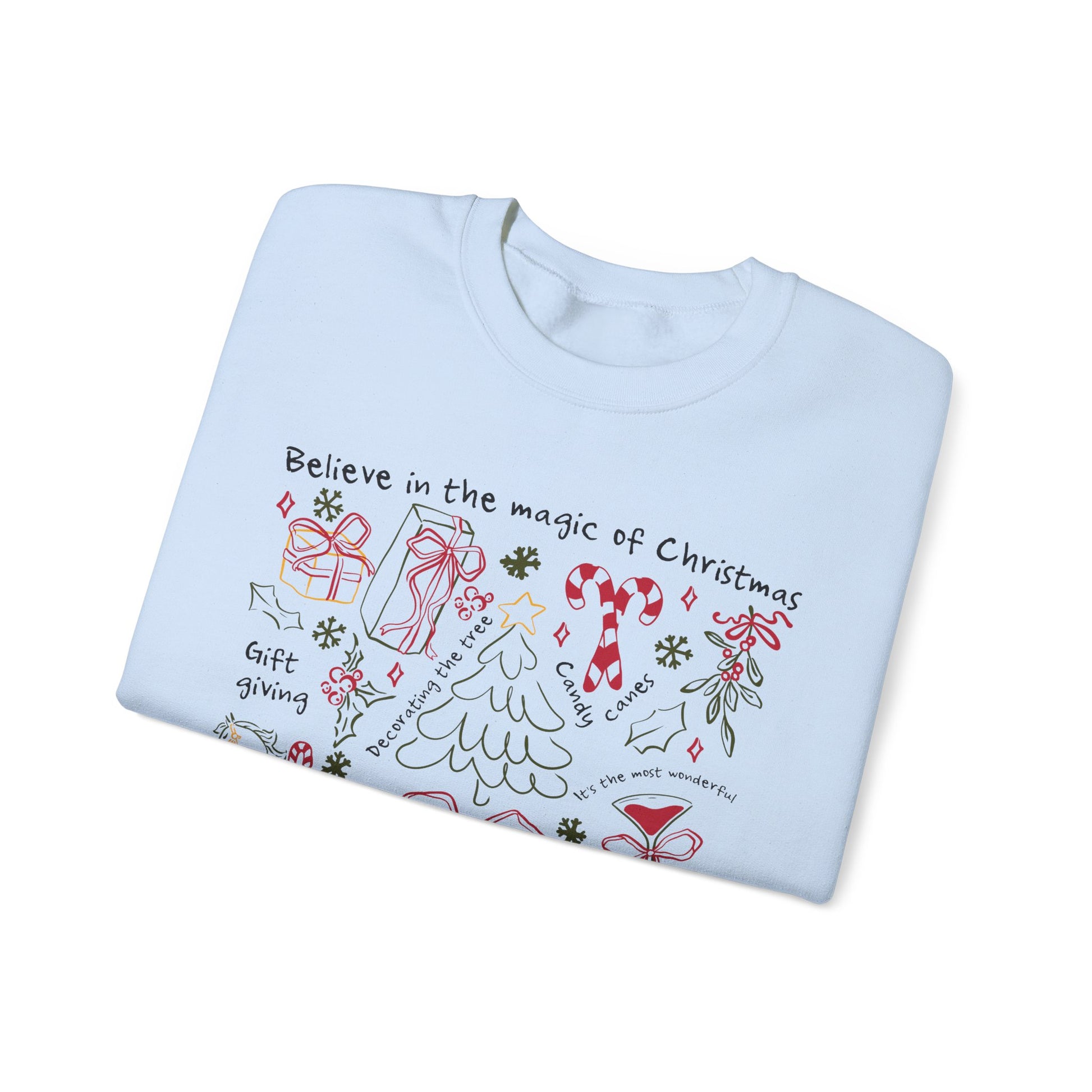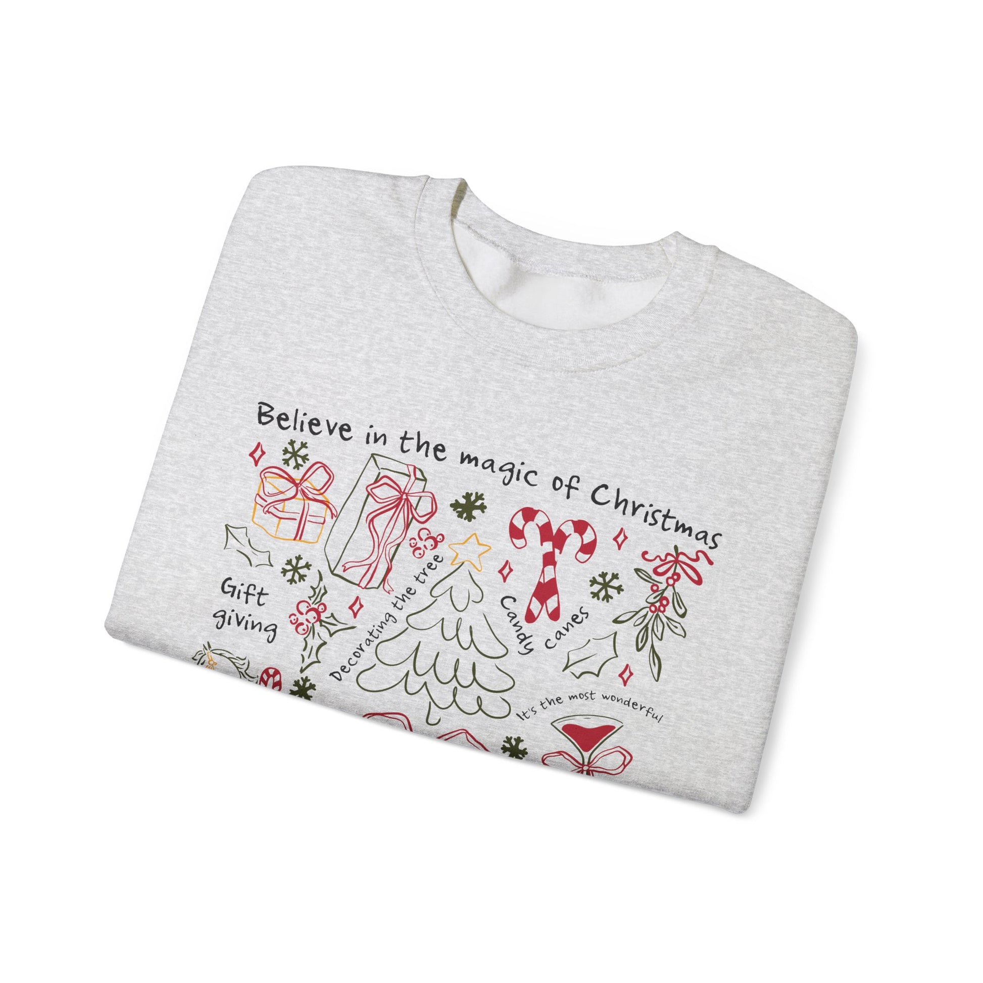 Believe in the Magic of Christmas Doodle Festive Holiday Cozy Crewneck Sweatshirt