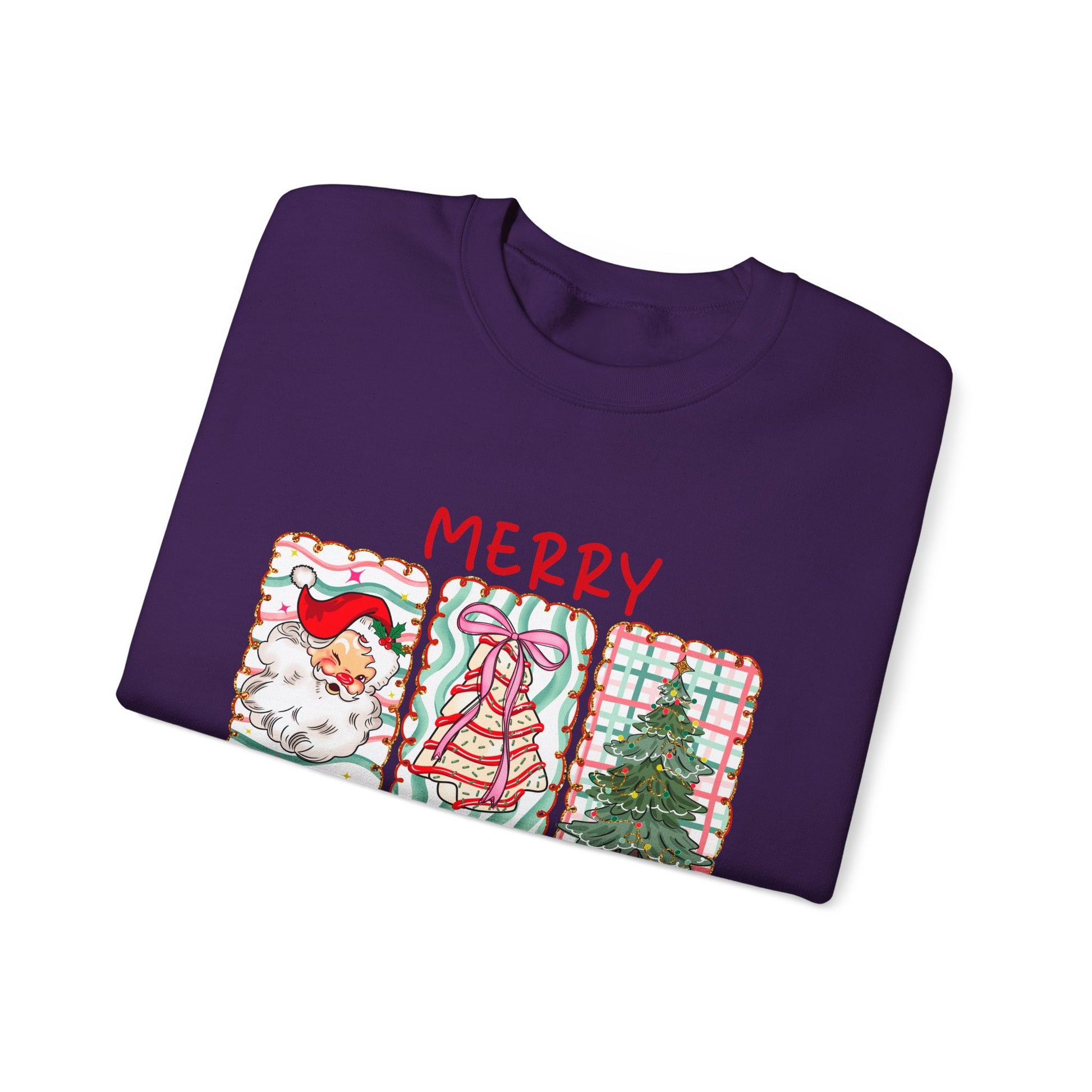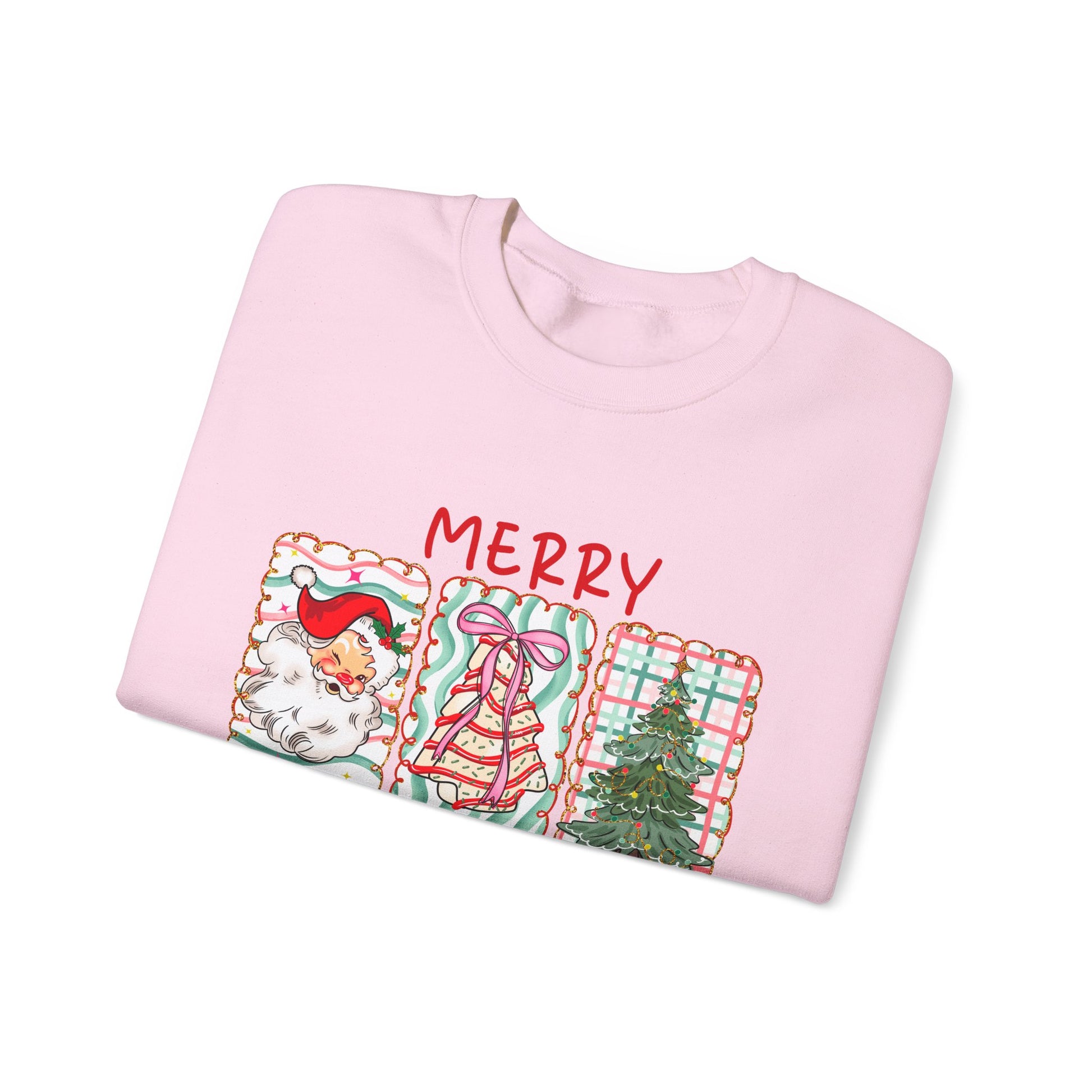 Festive Merry Christmas Crewneck Sweatshirt with Santa, Tree, & Bow Art